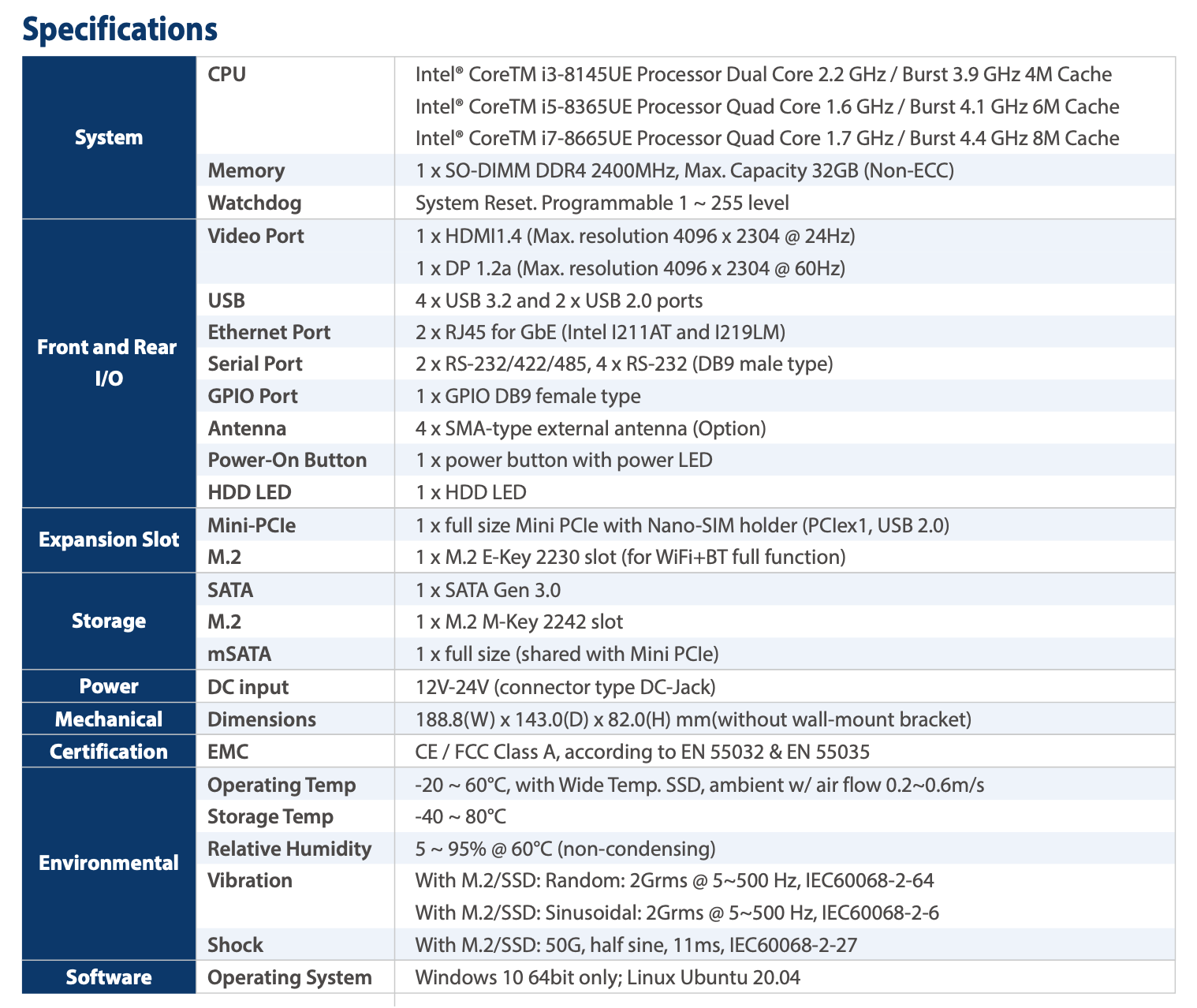 • High performance system for Edge AI solution, such as ATM, Kiosk, self-service and automation control