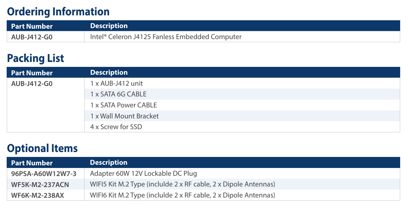 AUB-J412-G0 无风扇嵌入式系统