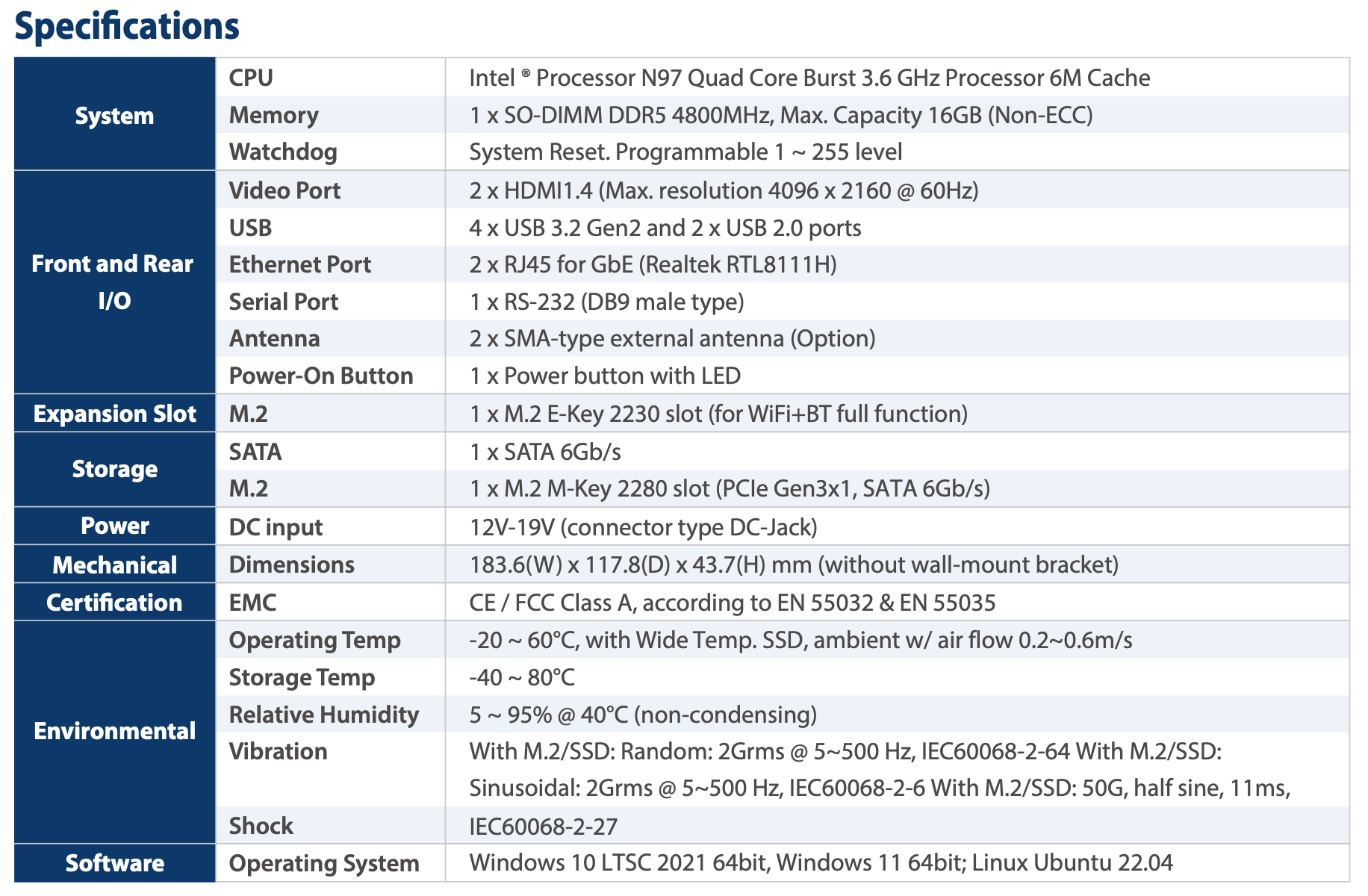 • Compact, optimized performance and low power system for mission-critical applications, such as Digital signage, ATM, Kiosk, self-service and automation control