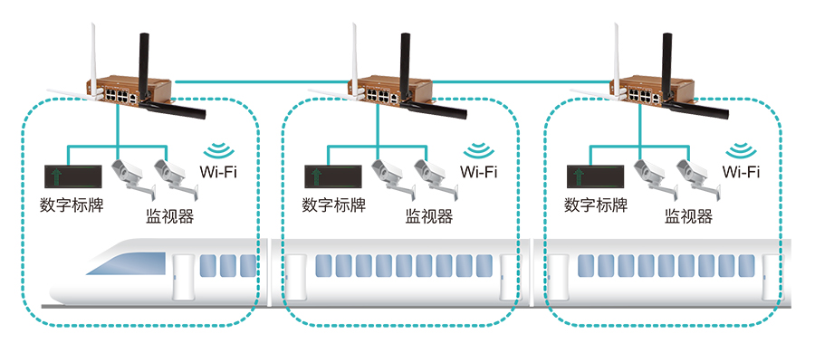 每节车厢安装一台 WA329P,用于连接摄像机和数字标牌。